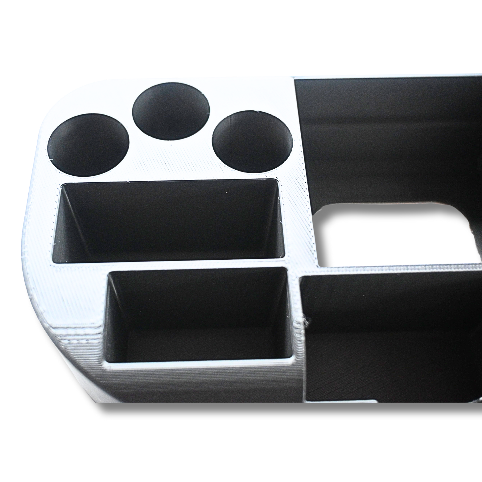 Gefertigt wird der Organizer im 3D-Druckverfahren aus stabilem PLA-Kunststoff. Das Material ist formstabil, langlebig und leicht zu reinigen. Die bewusst schlichte, funktionale Gestaltung passt sowohl in medizinisch geprägte Umgebungen als auch auf den Schreibtisch oder ins Badezimmer, ohne aufdringlich zu wirken.