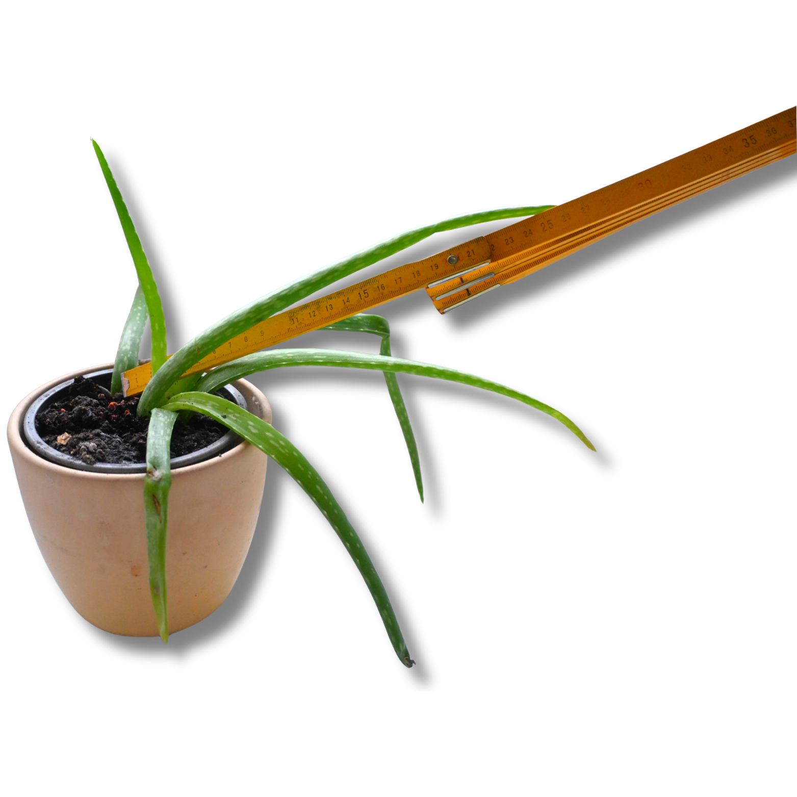 Mit einer Gesamtbreite von ca. 25–30 cm (je nach Blattstand) und einer Höhe von etwa 15–20 cm ist diese Aloe ein dekorativer Blickfang, ohne dominant zu wirken.