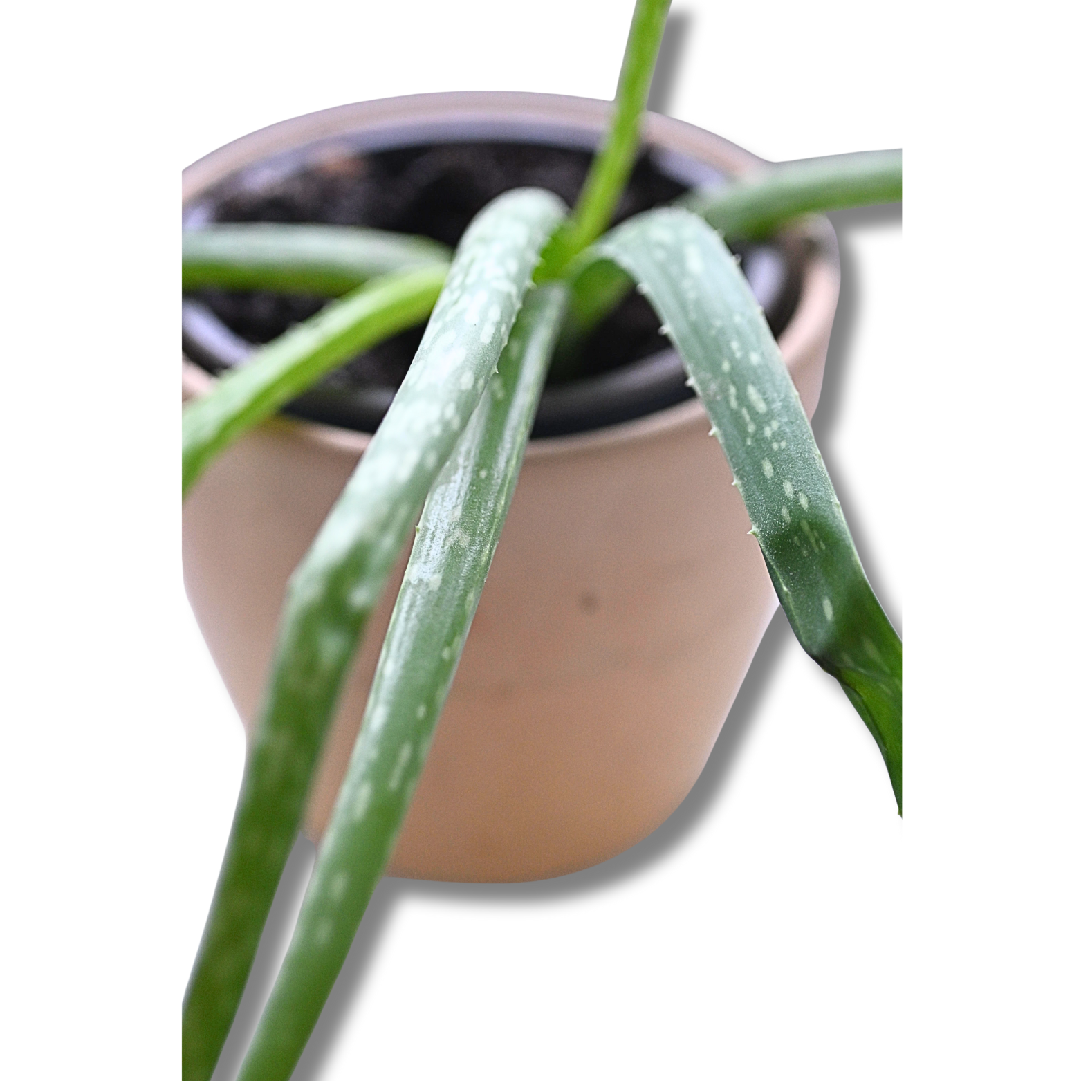 Die Aloe vera ist eine beliebte und zugleich dekorative Sukkulente, die durch ihre langen, schmalen und leicht überhängenden Blätter auffällt. Die frischen, hell- bis mittelgrünen Blätter sind mit feinen, hellen Sprenkeln versehen und wachsen rosettenartig aus der Mitte der Pflanze. Durch ihren lockeren, ausladenden Wuchs wirkt diese Aloe besonders lebendig und natürlich.