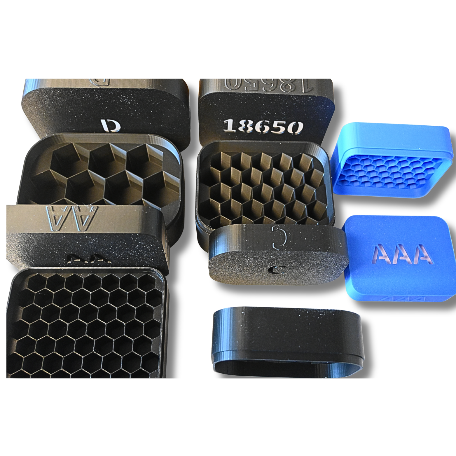 Aufbewahrungsbox Set mit fünf Boxen mit Deckel ( AA & AAA & C & D & 18650 Batterien) Schwarz