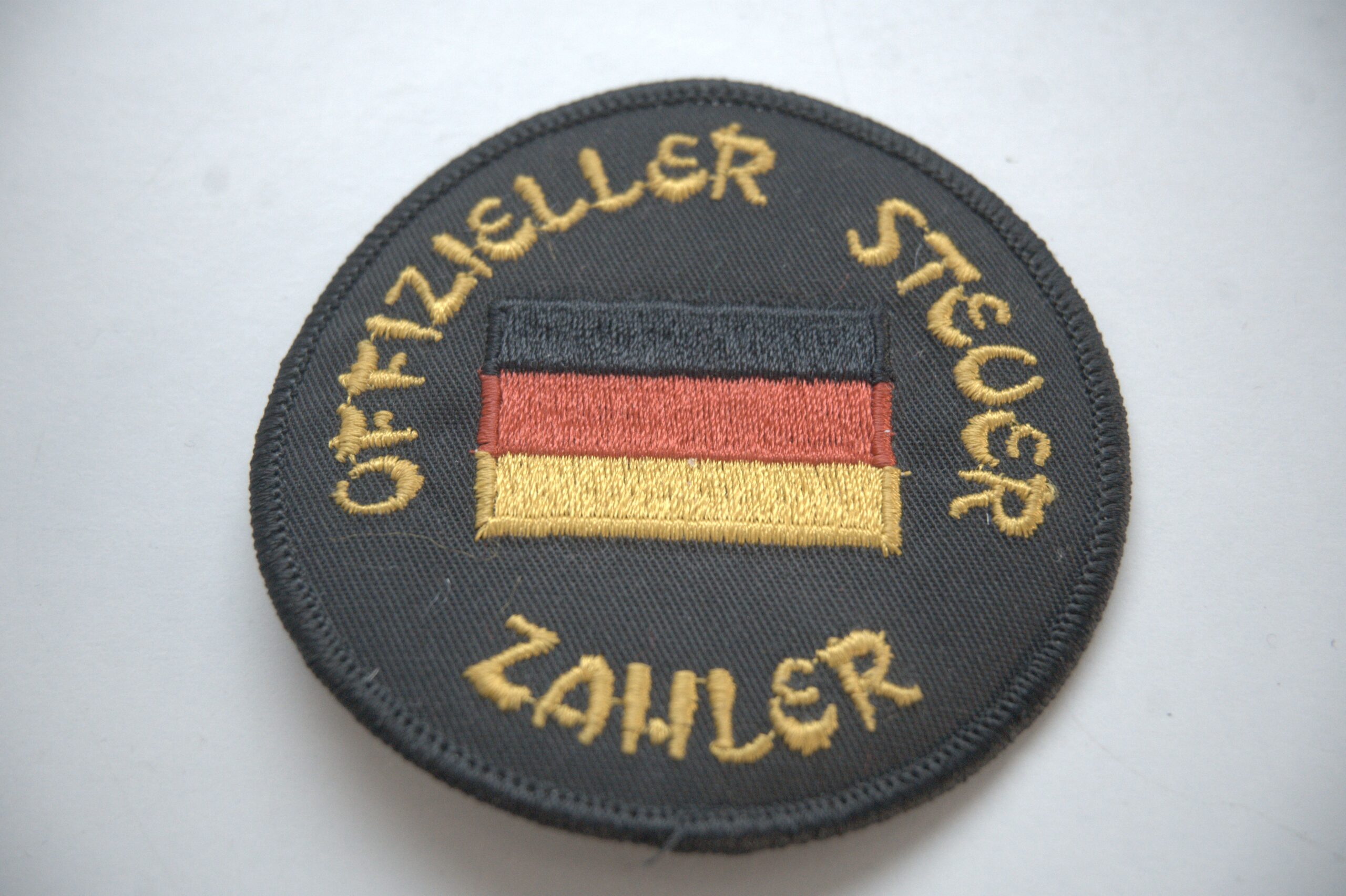 Dieser runde Aufnäher zeigt mittig die deutsche Flagge und trägt umlaufend die gut lesbare Stickerei „Offizieller Steuerzahler“. Die Gestaltung ist bewusst schlicht und klar gehalten, wodurch das Motiv sofort erkennbar ist. Die Stickerei ist sauber ausgeführt und farblich in Schwarz, Gold sowie den typischen Farben der Deutschlandflagge gehalten.