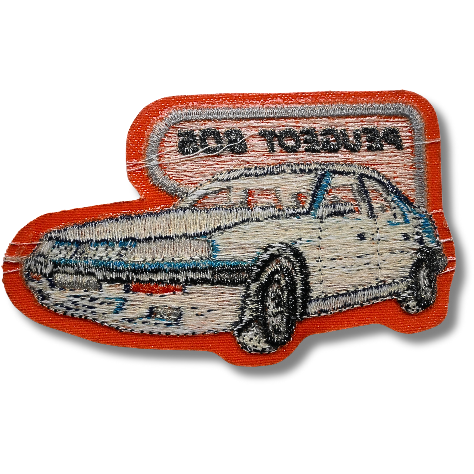 Dieser hochwertige Aufnäher mit Peugeot-605-Motiv zeigt die elegante Linienführung der klassischen Limousine in einer fein ausgearbeiteten Stickerei. Das Fahrzeug ist in kontrastreichen Farben dargestellt und wird durch einen auffälligen orangefarbenen Hintergrund zusätzlich betont. Die Konturen sind sauber gestickt, wodurch das Motiv auch aus der Nähe gut erkennbar bleibt.