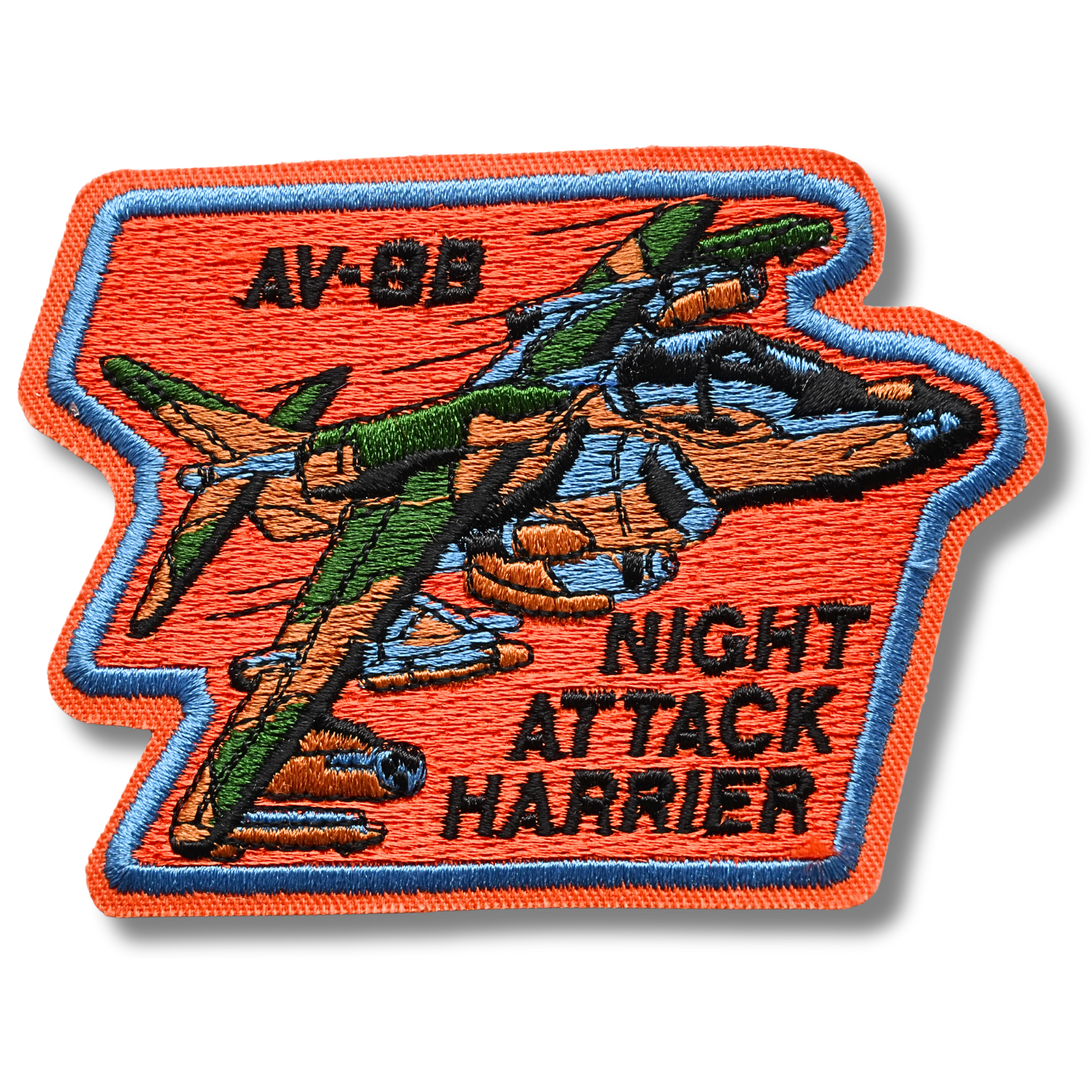 Dieser hochwertig gearbeitete Aufnäher zeigt den bekannten Senkrechtstarter AV-8B Night Attack Harrier in dynamischer Darstellung. Das Motiv ist mehrfarbig bestickt und hebt sich durch kräftige Farben sowie eine stabile Randumstickung deutlich hervor.