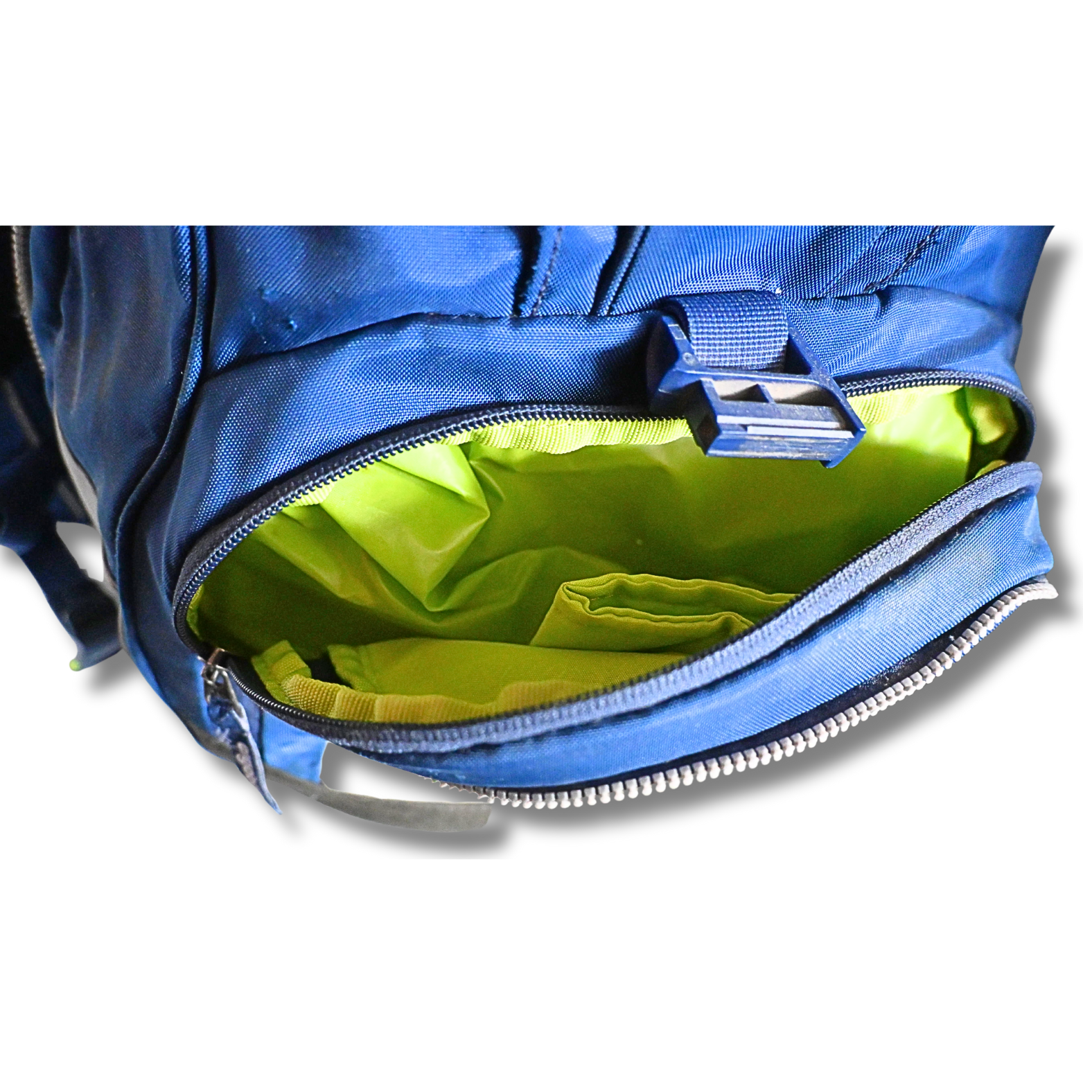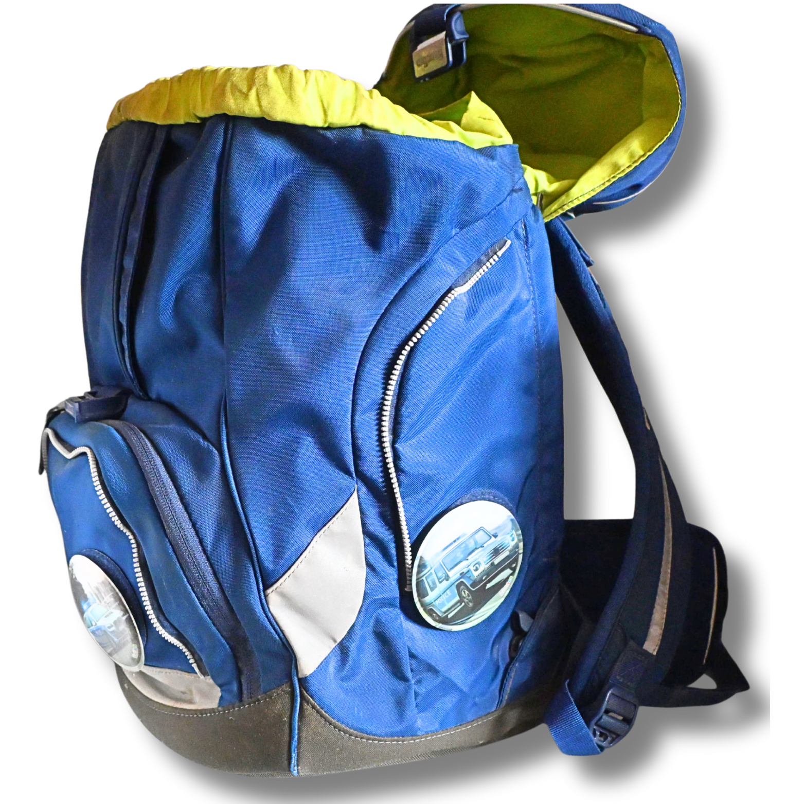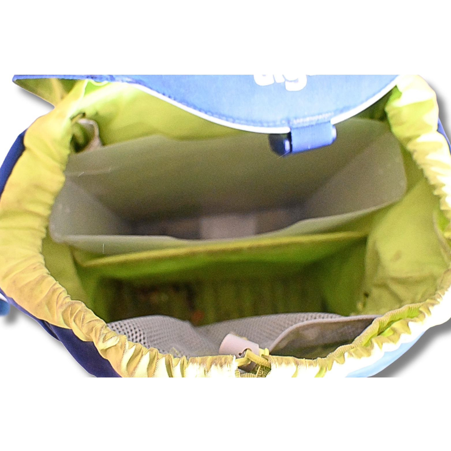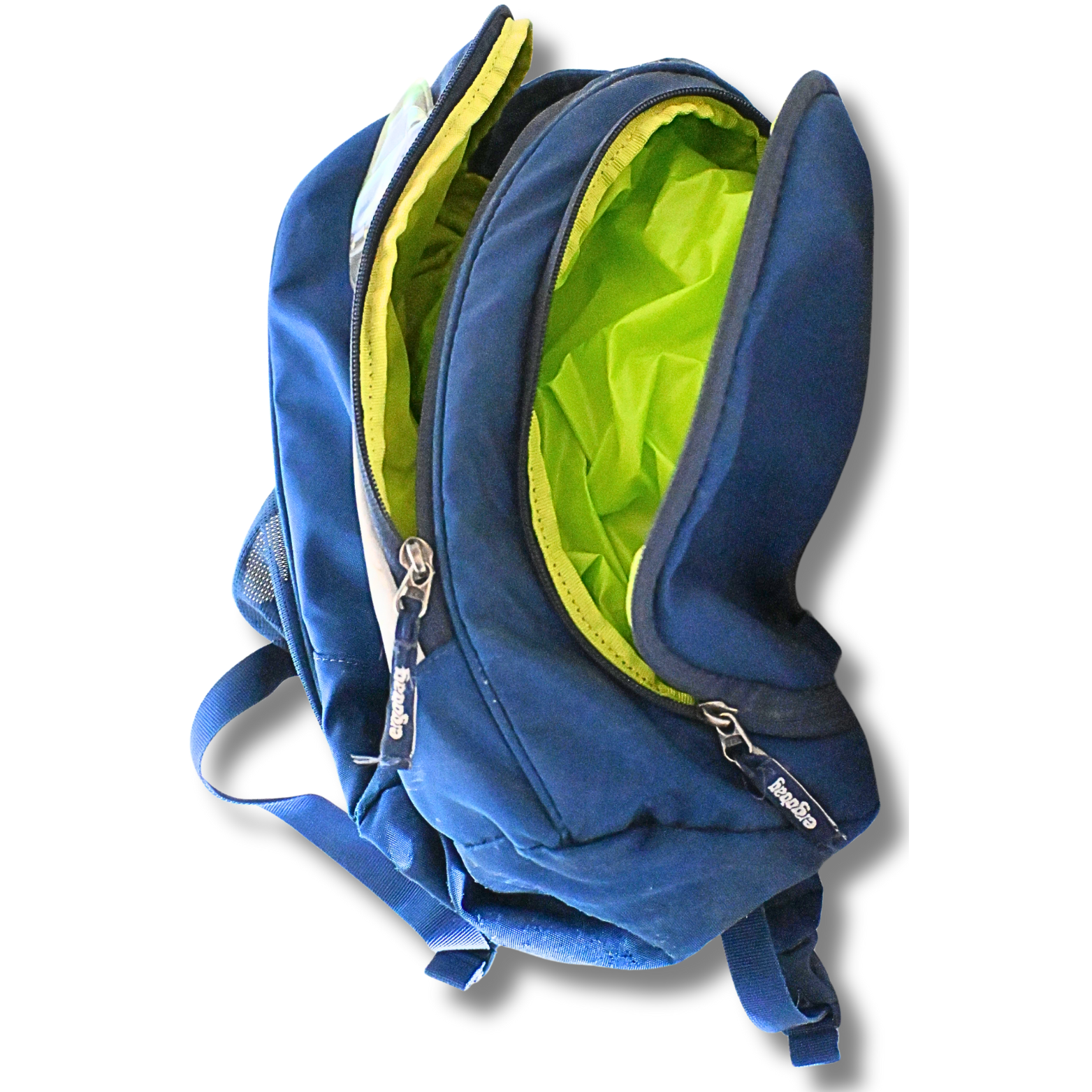 Dieser ergobag Schulrucksack in Blau mit leuchtend grünem Innenfutter bietet viel Stauraum und eine durchdachte Innenaufteilung. Der Rucksack verfügt über mehrere große und kleine Fächer, darunter ein Hauptfach mit Unterteilung, ein vorderes Reißverschlussfach sowie seitliche Staufächer. Alle Reißverschlüsse lassen sich problemlos öffnen und schließen. Die ergonomischen Schultergurte sind verstellbar und bieten einen guten Sitz.