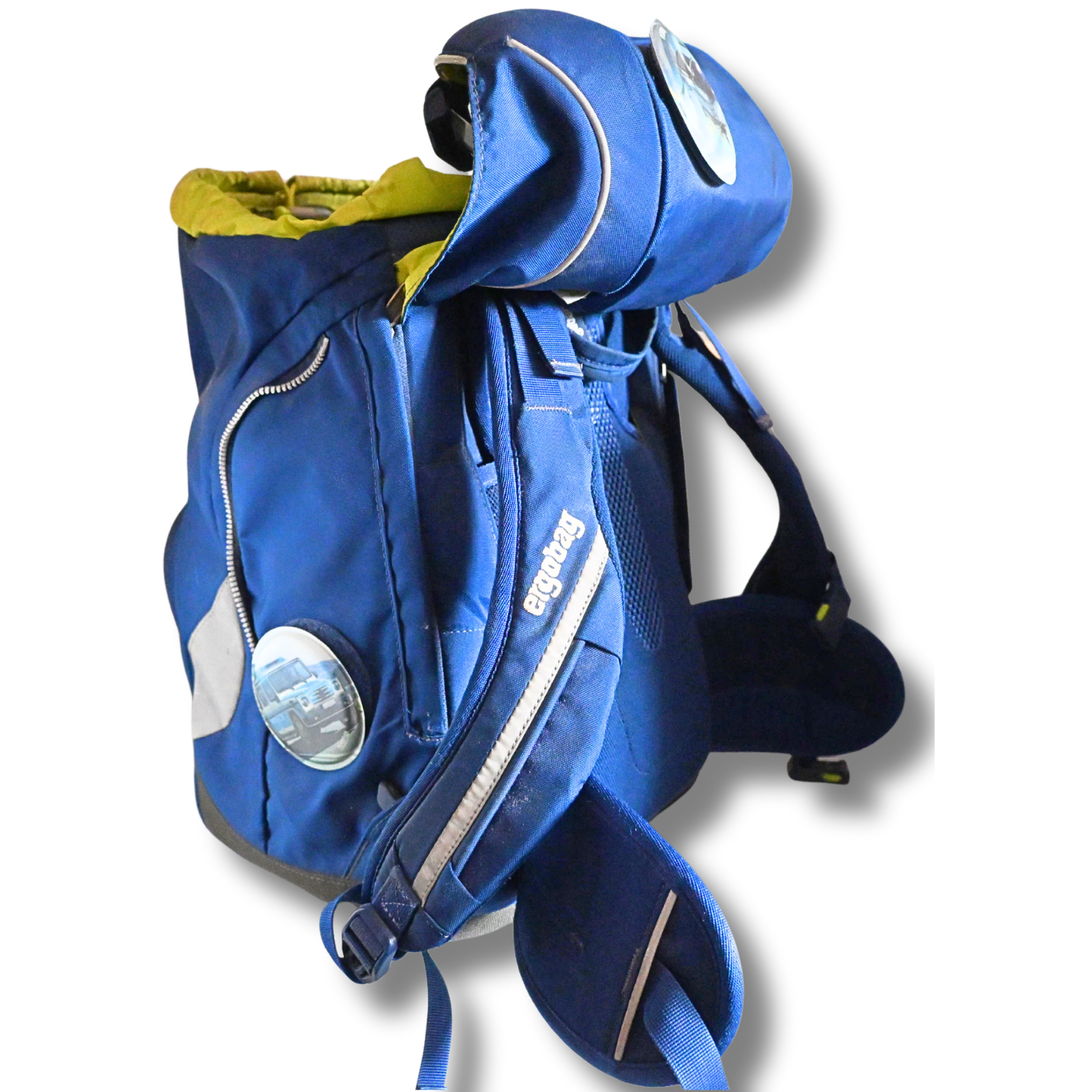 Dieser ergobag Schulrucksack in Blau mit leuchtend grünem Innenfutter bietet viel Stauraum und eine durchdachte Innenaufteilung. Der Rucksack verfügt über mehrere große und kleine Fächer, darunter ein Hauptfach mit Unterteilung, ein vorderes Reißverschlussfach sowie seitliche Staufächer