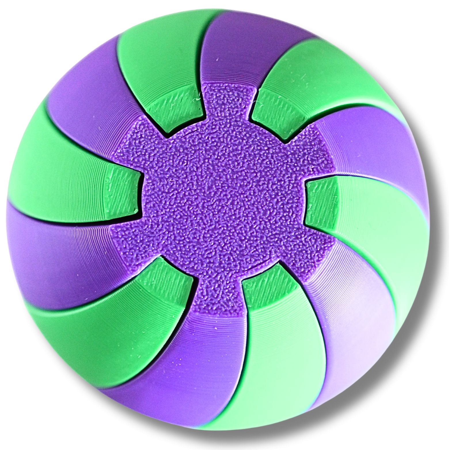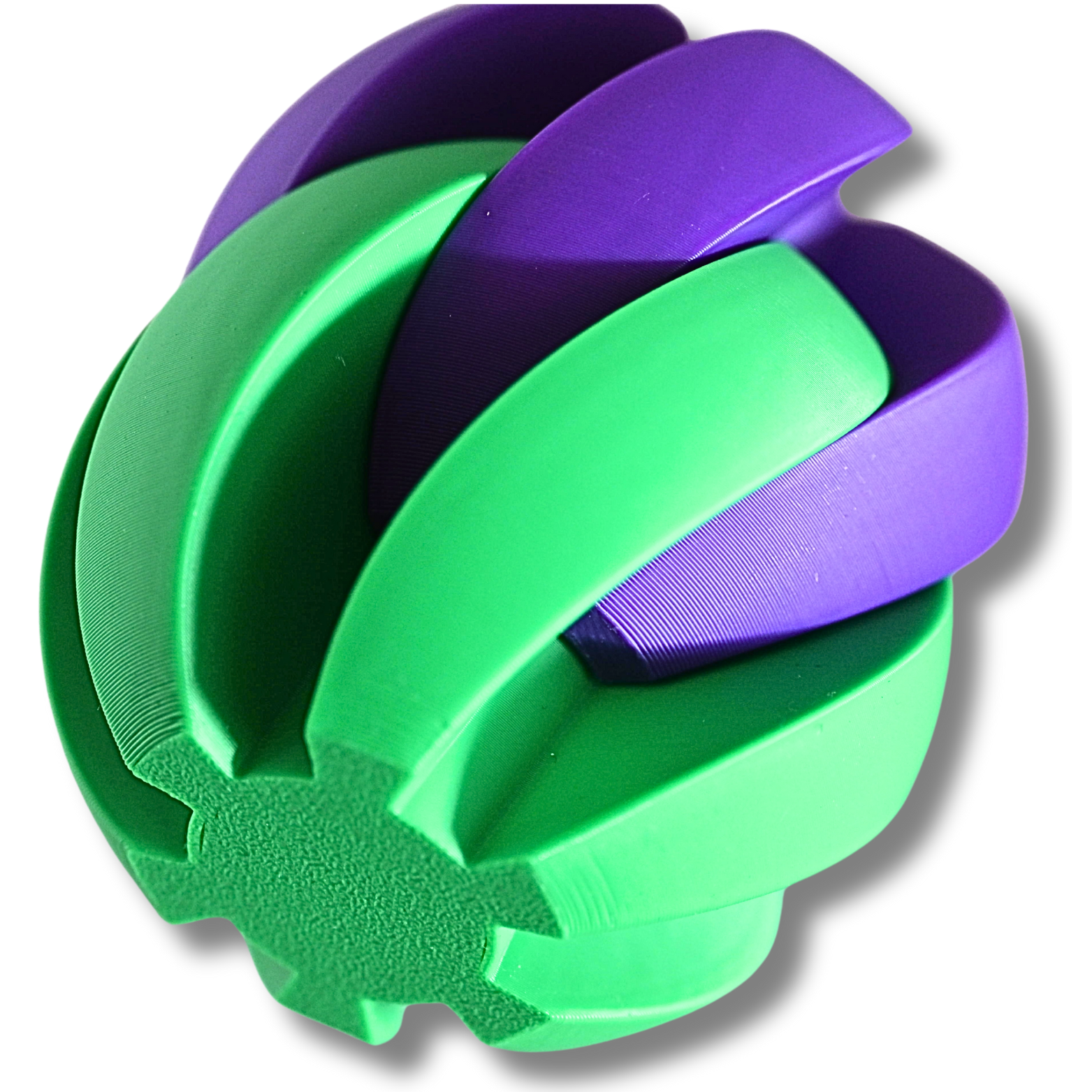 Diese zweiteilige Spiralkugel kombiniert Design, Funktion und Spaß in einem außergewöhnlichen 3D-Objekt. Gefertigt aus hochwertigem, robustem Biokunststoff ( PLA) im präzisen 3D-Druckverfahren, beeindruckt sie durch ihre leuchtenden Farben in Grün und Lila sowie durch die perfekte Passform beider Hälften. Jede Kugelhälfte ist spiralförmig gestaltet und lässt sich nahtlos ineinanderstecken, wodurch ein faszinierendes, nahezu magisches Muster entsteht.