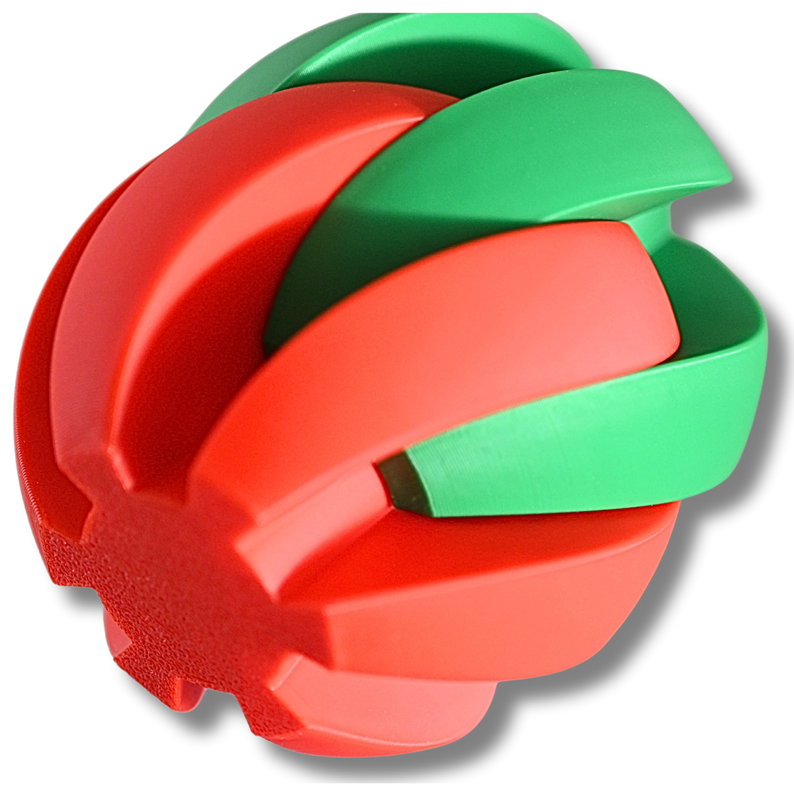 Diese zweiteilige Fidget-Spiralkugel in kräftigem Rot und frischem Grün ist ein echter Hingucker und zugleich ein faszinierendes Entspannungs- und Konzentrationsspielzeug. Sie besteht aus zwei ineinandergreifenden Hälften, die spiralförmig gestaltet sind und beim Zusammensetzen eine perfekt runde Kugel bilden.