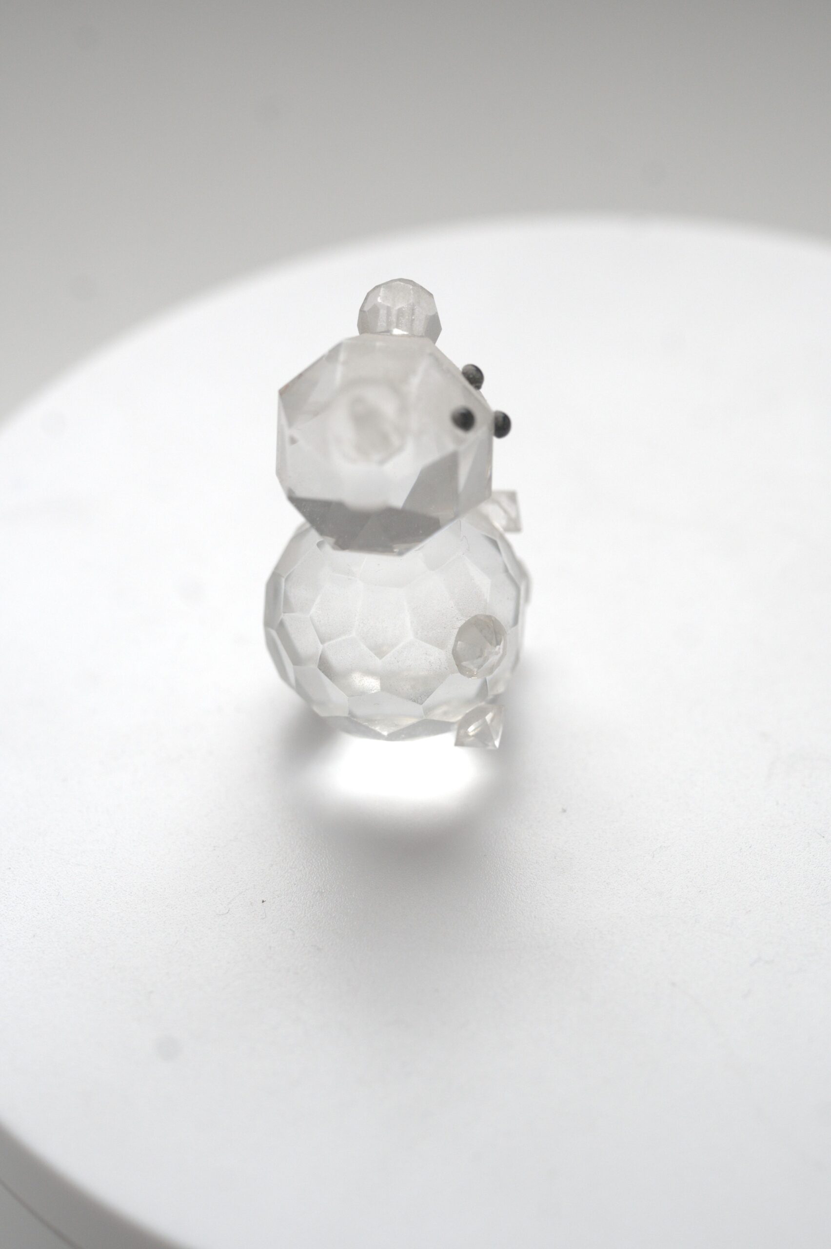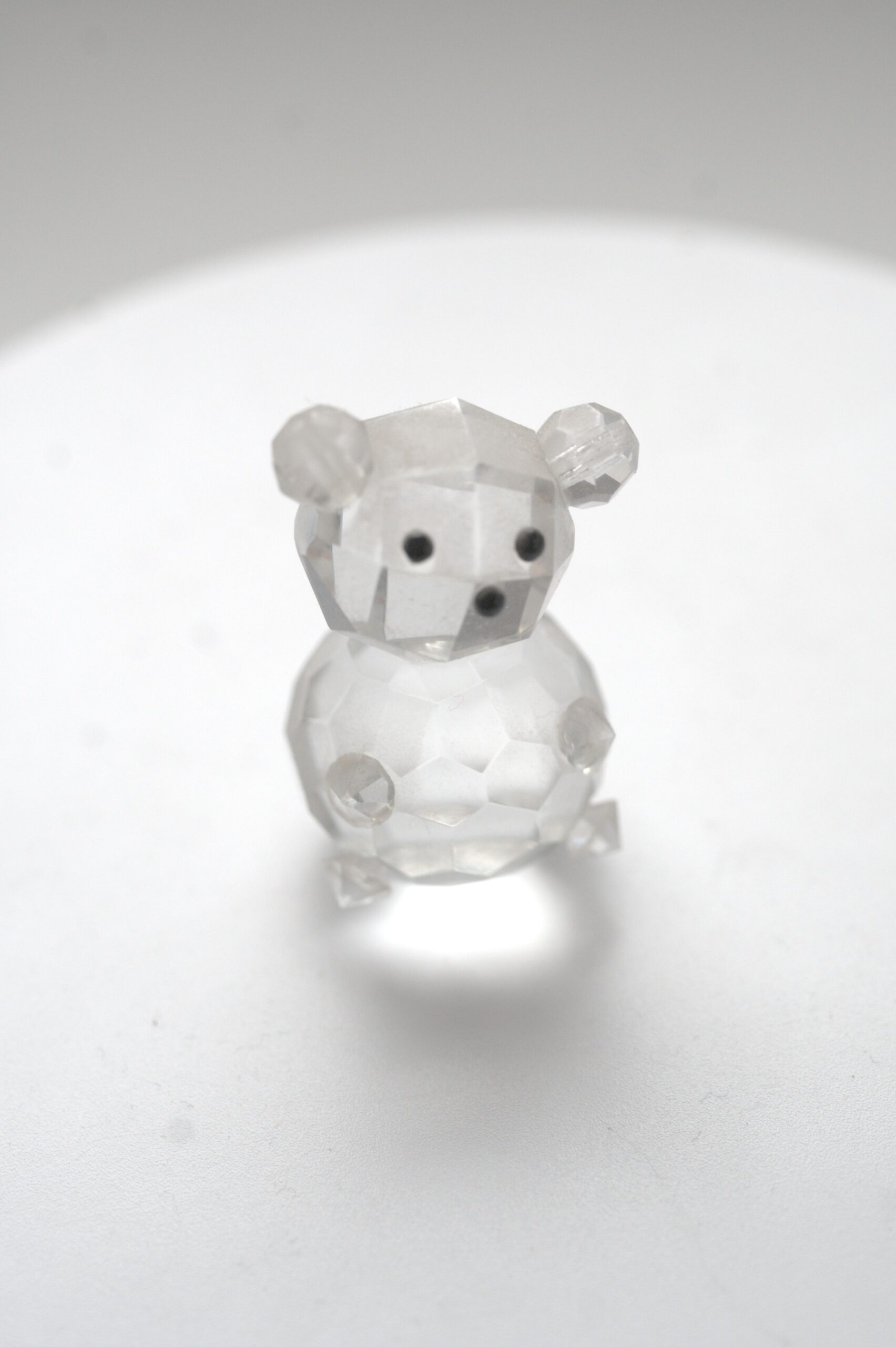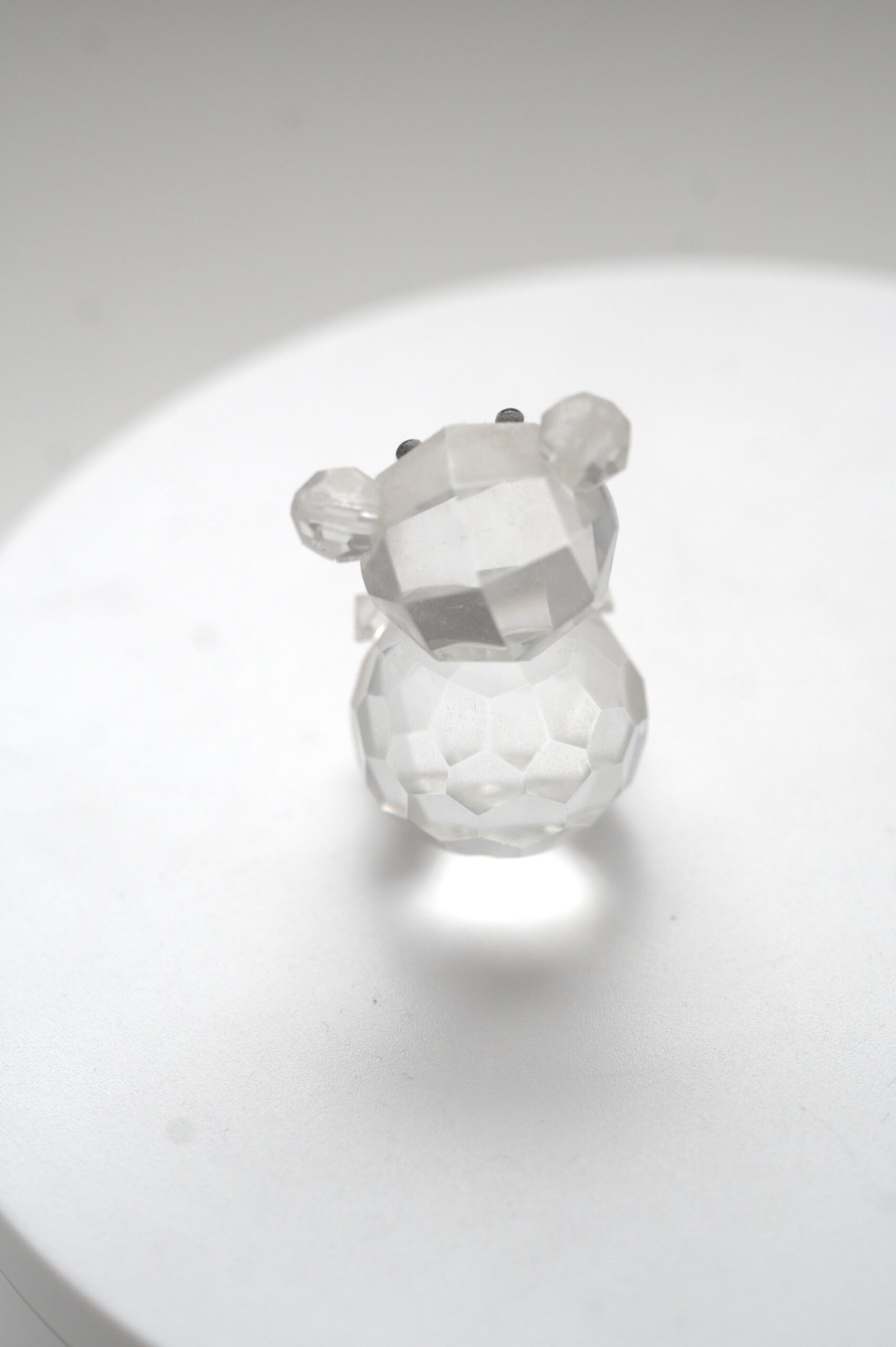 Die schlichte, transparente Gestaltung verleiht der Figur eine zeitlose Ausstrahlung. Kleine, dunkle Details im Gesichtsbereich sorgen für eine dezente Ausarbeitung der Mimik, ohne den klaren Gesamteindruck zu dominieren. Durch ihre Form eignet sich die Figur besonders gut als Dekorationsobjekt für Regale, Vitrinen oder Sammlungen mit Tiermotiven.