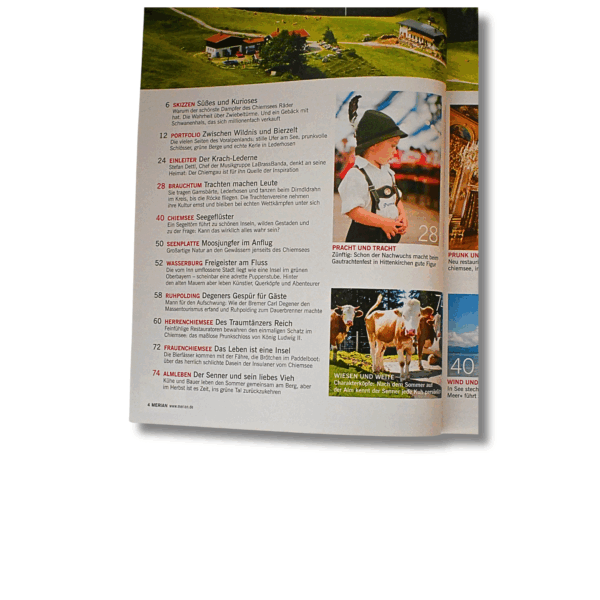 Neben dem See selbst widmet sich die Ausgabe auch der umliegenden Alpenlandschaft. Themen wie das stille Leben auf der Alm, traditionelle Bergbauernhöfe und Wanderwege geben einen authentischen Einblick in das Leben in den Bergen. Besonders hervorzuheben ist das Kapitel über Brauchtum: Tänze, Trachten und jahrhundertealte Traditionen, die das bayerische Kulturerbe prägen.