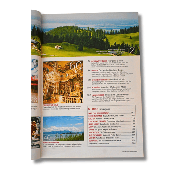 Das MERIAN-Heft Chiemgau – Chiemsee und das Alpenland bietet eine eindrucksvolle Entdeckungsreise in eine der schönsten Regionen Bayerns. Der Chiemsee, oft als „Bayerisches Meer“ bezeichnet, bildet den Mittelpunkt des Heftes und lädt mit seinen Inseln, Schlössern und vielfältigen Freizeitmöglichkeiten zum Erkunden ein.