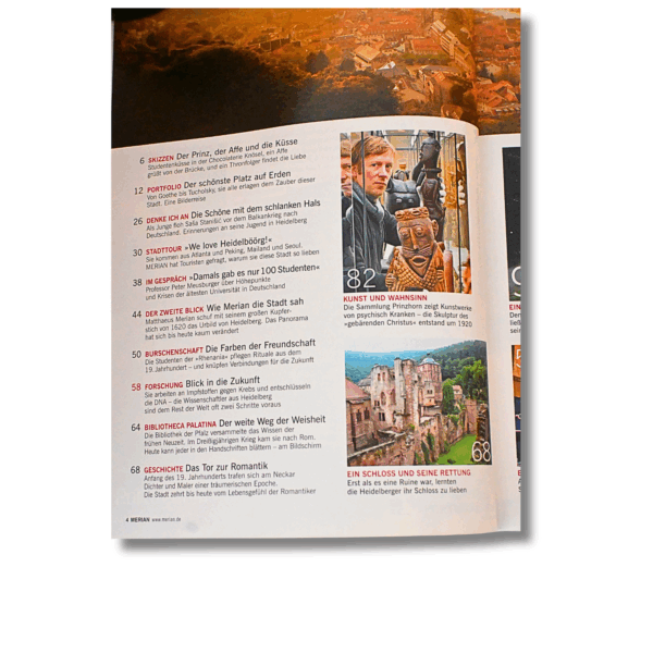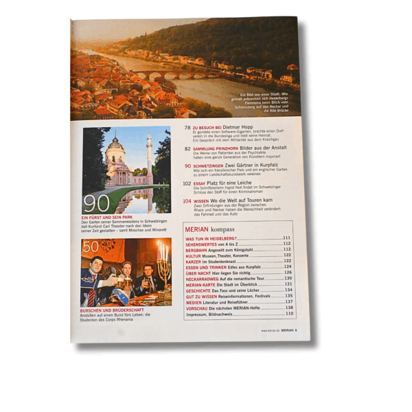 Darüber hinaus geht das Magazin der Frage nach, wie Heidelberg zu einem Ort wurde, „wo die Welt auf Touren kam“, und zeichnet ein facettenreiches Bild der Stadt als Zentrum von Wissen, Kultur und Lebensfreude.