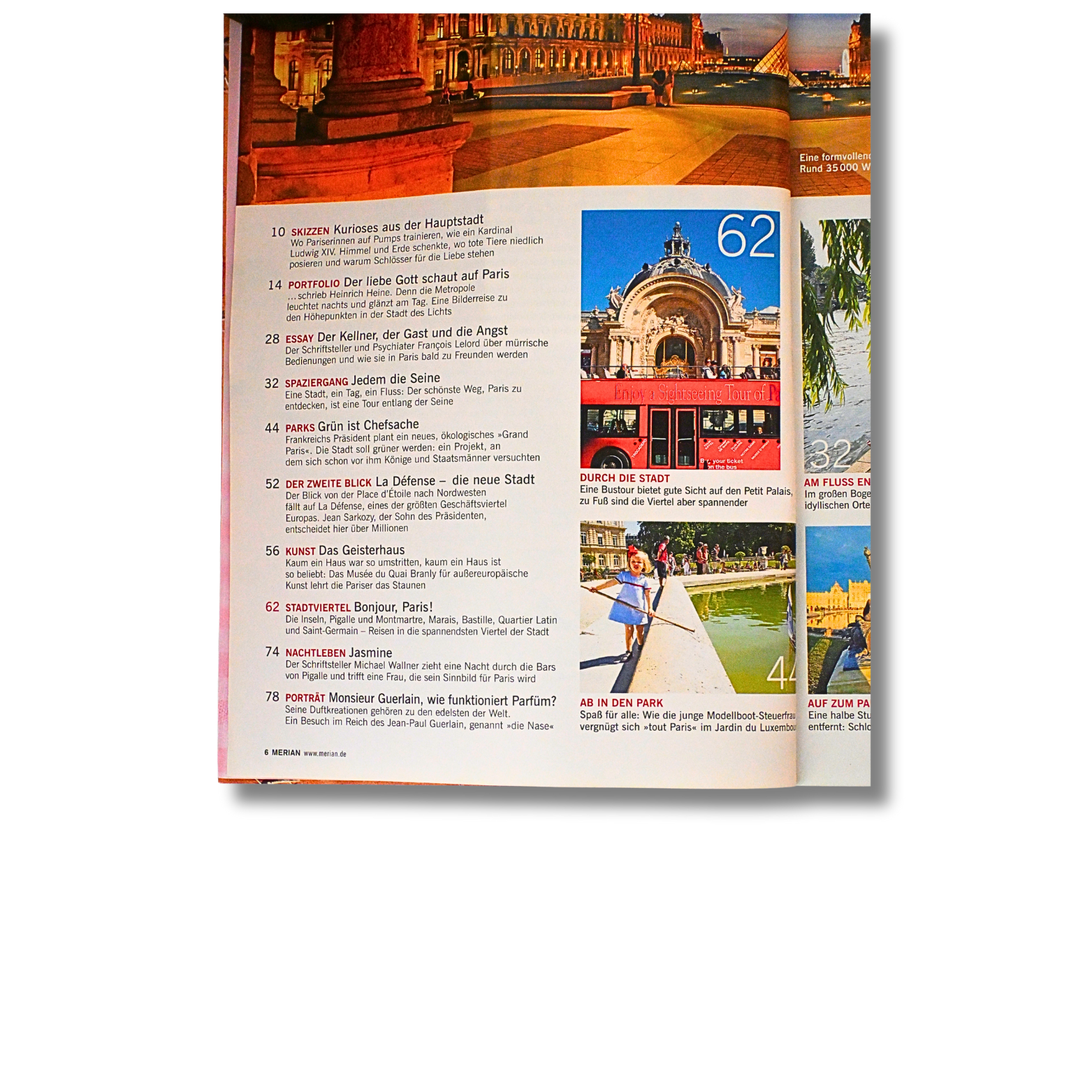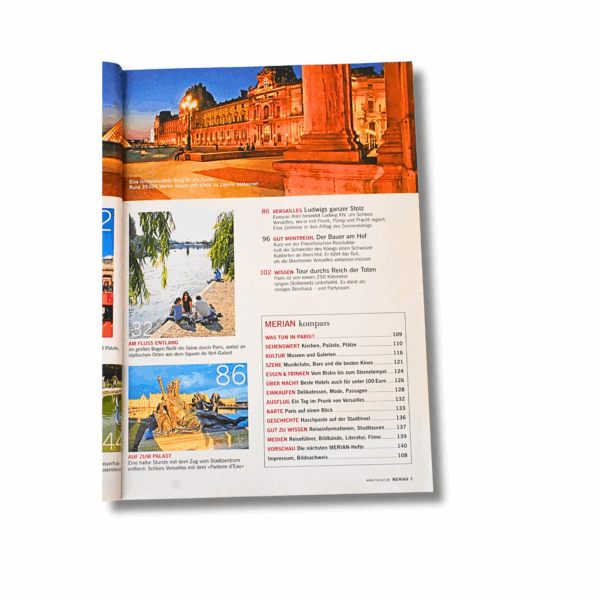 Die Ausgabe MERIAN – Paris nimmt den Leser mit in die Weltmetropole der Liebe und Kultur. Mit stimmungsvollen Reportagen und beeindruckenden Bildern zeigt das Heft die schönsten Seiten der französischen Hauptstadt.
