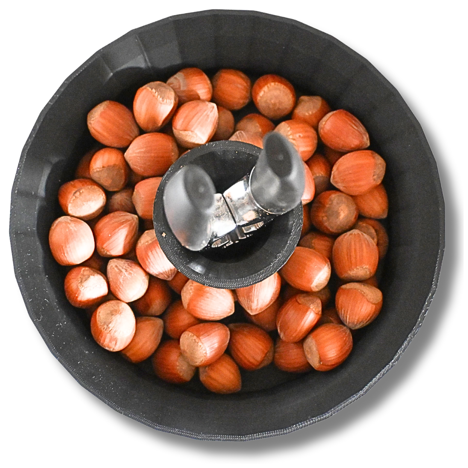 Nussbehälter mit integriertem Auffangbehälter. Gefertigt im präzisen 3D-Druckverfahren, überzeugt der Behälter durch Stabilität, saubere Kanten, und Haptik.