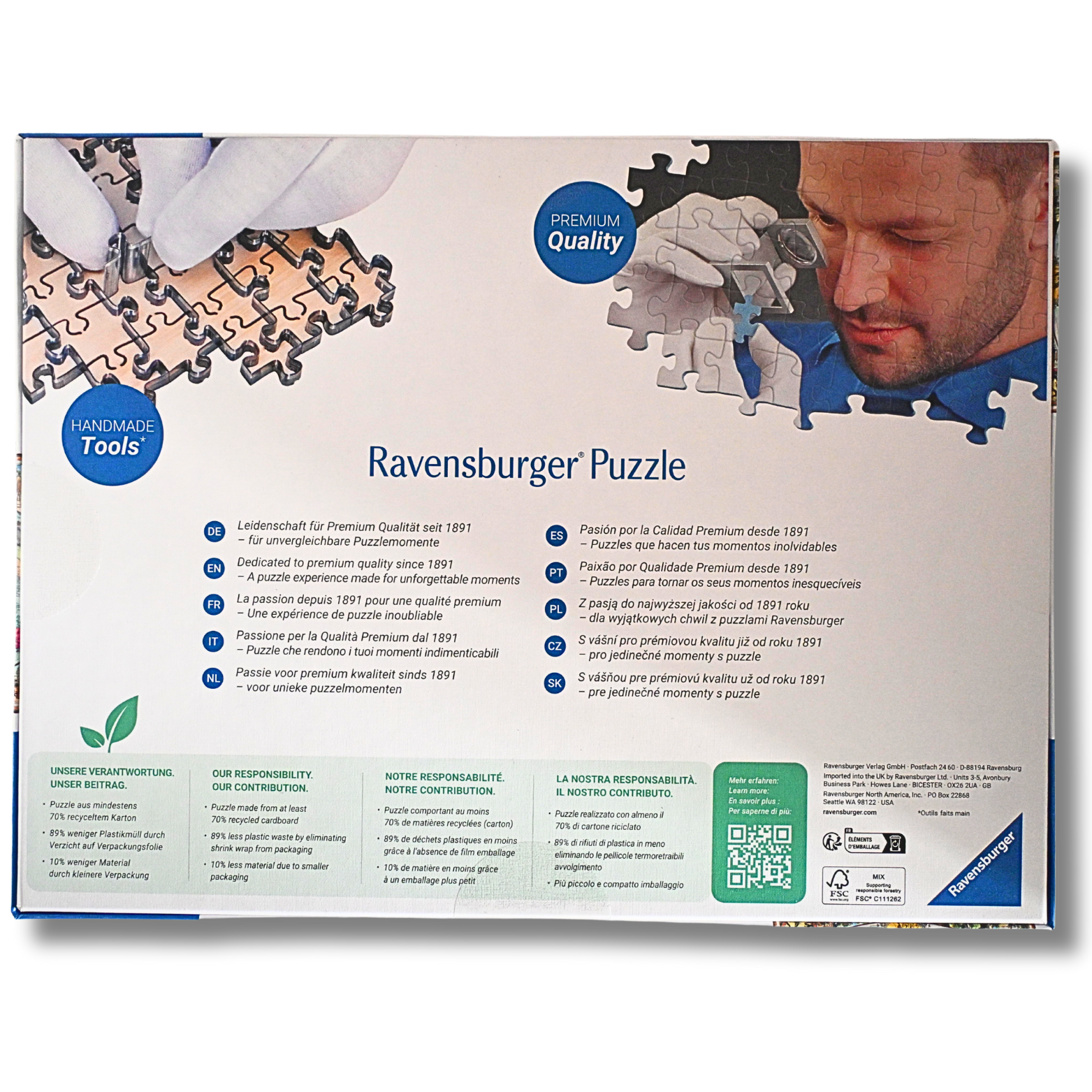 Dieses 1.000-teilige Puzzle kombiniert faszinierende Bilder mit sauber geschnittenen Teilen und der perfekten Passform von Ravensburger für ein wirklich angenehmes Puzzlevergnügen! Unsere Puzzles verfügen über eine exklusive, extra dicke Rückseite und unser hochwertiges Papier mit Leinenstruktur, das ein lebendiges, klares und blendfreies Druckbild gewährleistet. Schaffen Sie unvergessliche Momente mit Ravensburger Premium Puzzles.