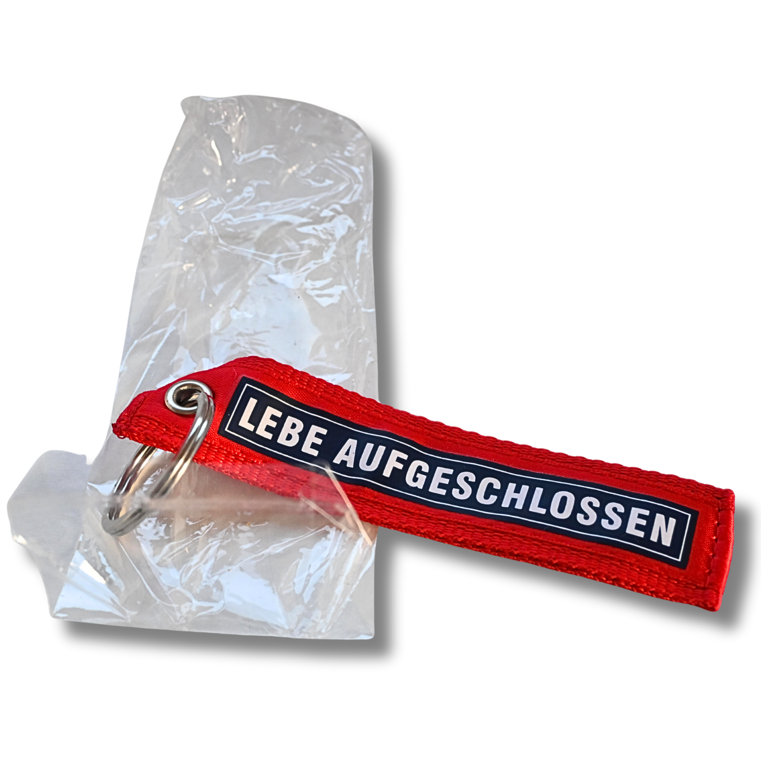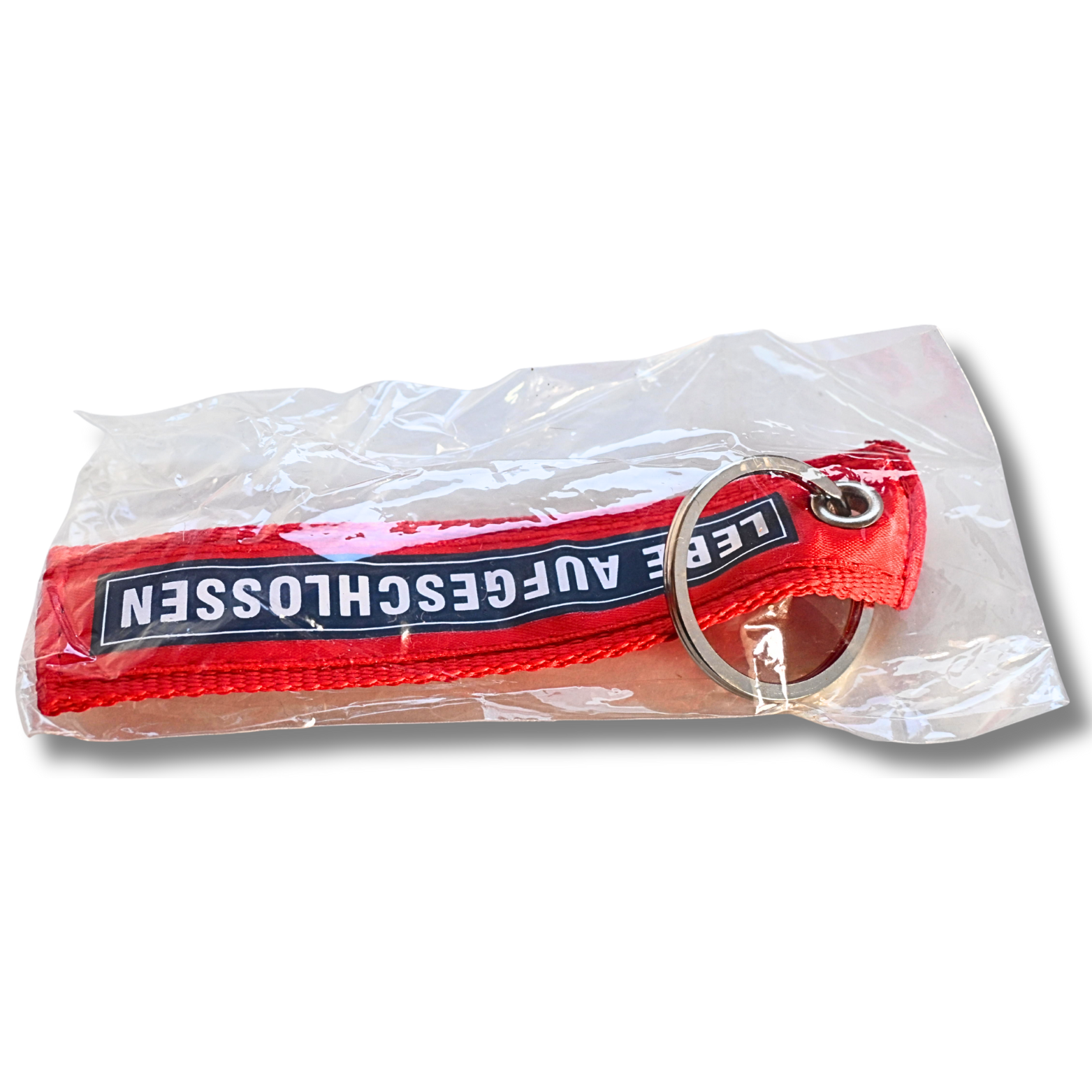 Der stabile Metallring sorgt für sicheren Halt am Schlüsselbund, Rucksack oder an Taschen. Durch das kompakte Format liegt der Anhänger gut in der Hand und ist gleichzeitig ein dezenter, aber klar erkennbarer Marken-Akzent.