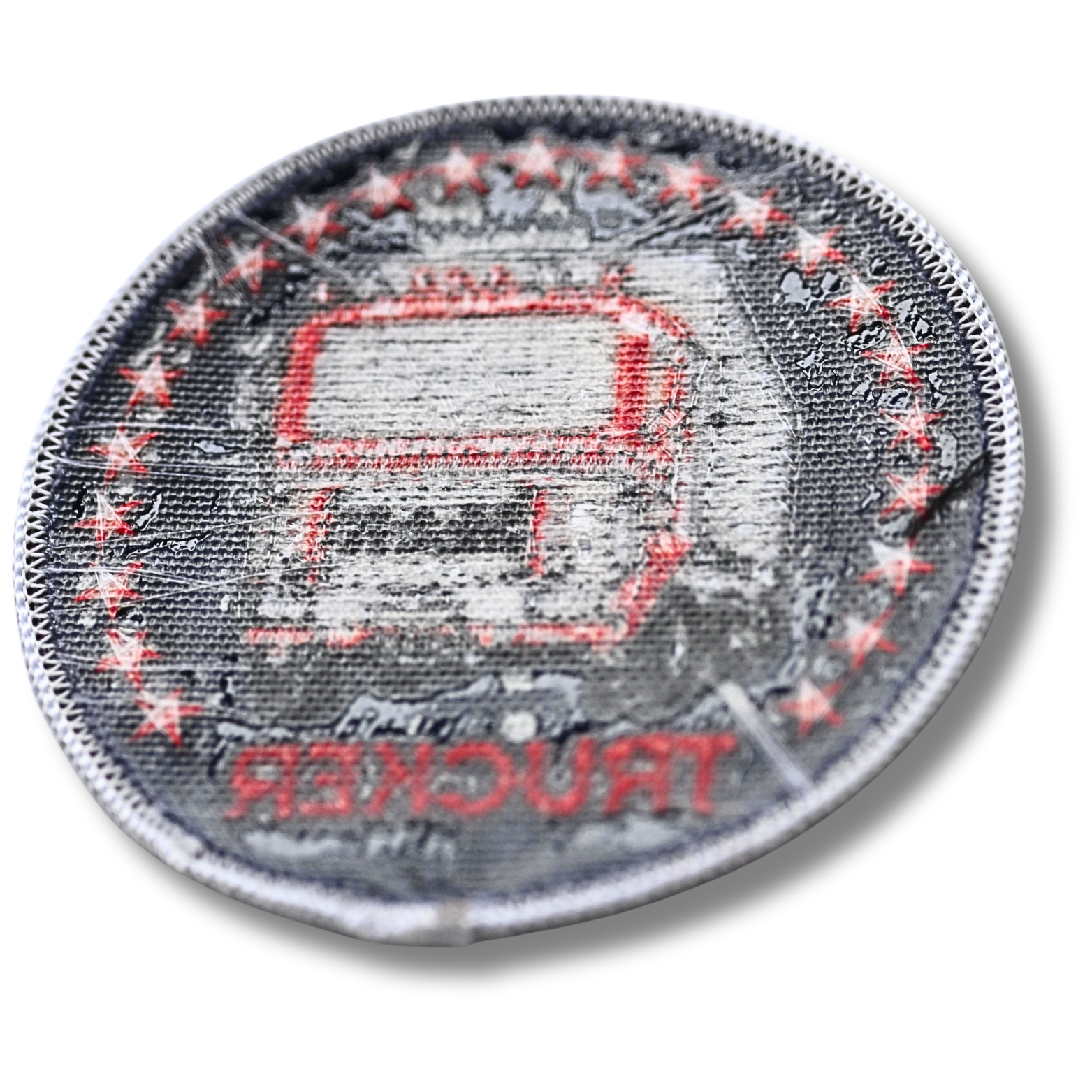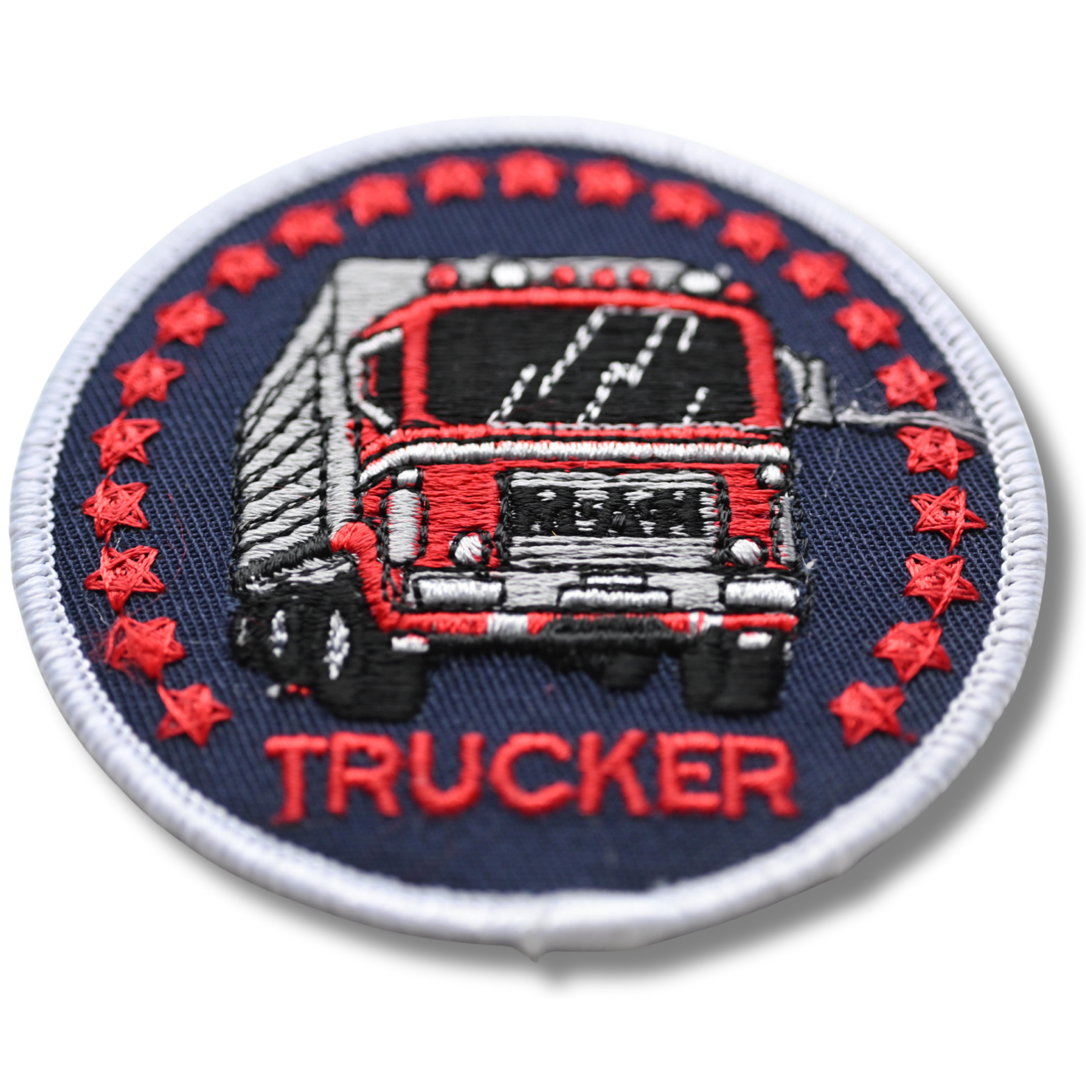 Runder, hochwertig gestickter Aufnäher mit Trucker- bzw. LKW-Motiv. Ideal für Jacken, Westen, Taschen oder Sammlungen. Preis inkl. Versand.