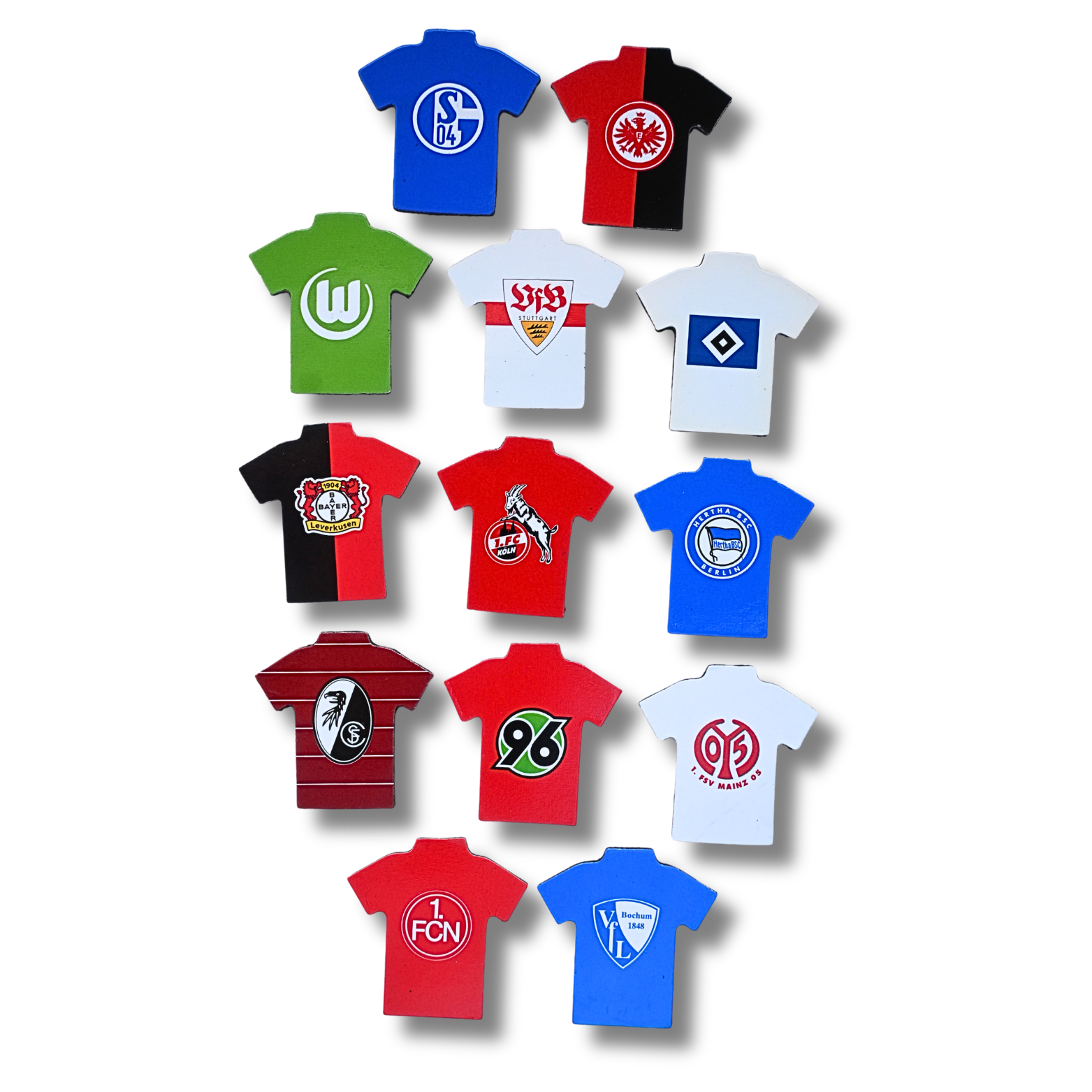 Tauchen Sie ein in die Welt des Fußballs mit diesen Bundesliga Trikot Magnet Pins, die die Leidenschaft und Treue zur Mannschaft von Eintracht Frankfurt, Herta BSC Berlin, 1. FC Köln, FC Schalke 04, Leverkusen, VFL Wolfsburg, Hannover 96, SC Freiburg, VfL Bochum, VfL Stuttgart, Hamburger SV, 1. FC Nürnberg und/or 1. FSV Mainz 05 zum Ausdruck bringen.