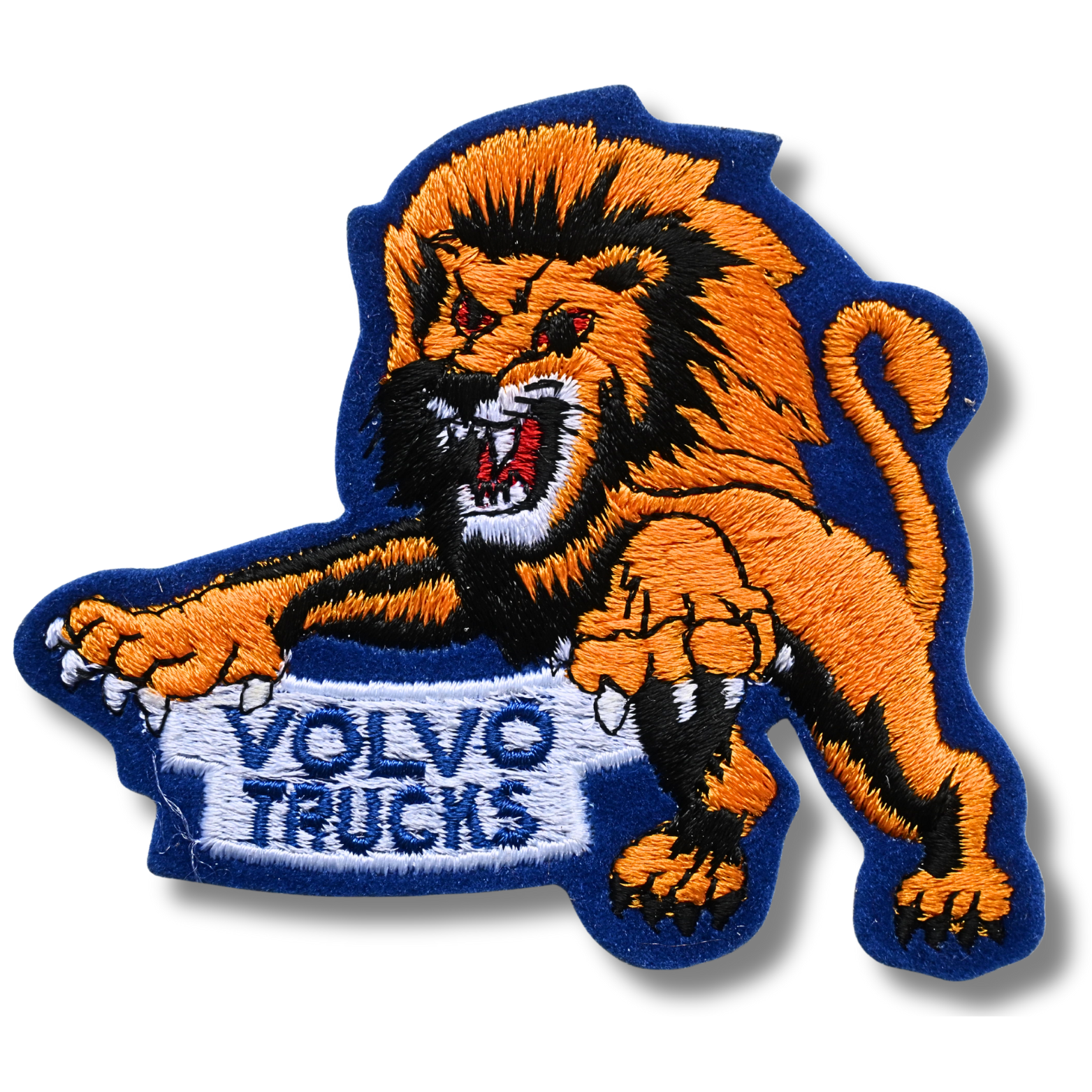 Detailreich gestickter Aufnäher mit kraftvollem Löwenmotiv und Schriftzug „Volvo Trucks“ in markantem Design.